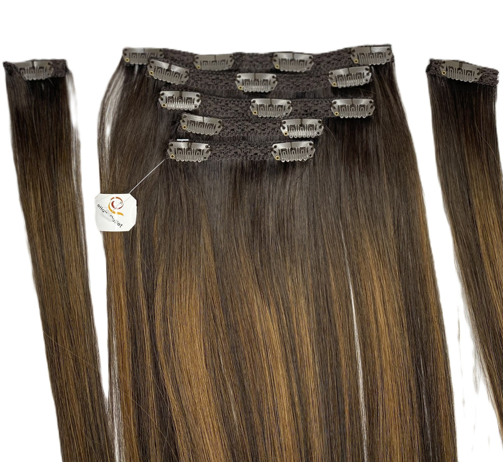 8A Straight Clip-In Human Hair Extension Color P#2/27A